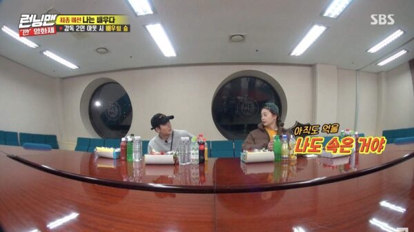 Jun So Min berkata dengan ceria, “Sebenarnya, senang sekali dieliminasi begitu awal [dalam lomba]. Kami berdua bisa menghabiskan waktu bersama-sama dengan nyaman”. Dia kemudian bercanda dengan berkata kepada staf Kshow Running Man, “Kunci pintunya, supaya tidak ada yang bisa masuk”.